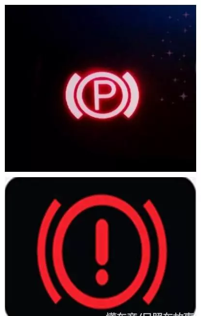 中间带“P”的灯亮表示未拉下手刹,不是故障;中间带感叹号的灯亮,表示刹车系统出现问题,这是故障,像刹车片磨损严重、失效,刹车油变质或液位过低、ABS失效等等。