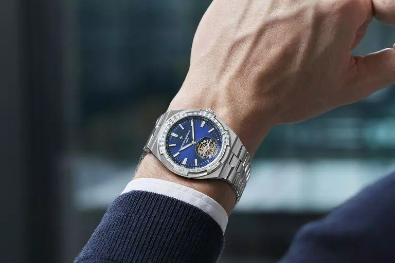 此次,在旅行精神下应运而生的Overseas纵横四海系列为其陀飞轮表款引入两大全新设计元素。其一,这是Overseas纵横四海系列陀飞轮表款首次采用白金材质,充分契合其精致美学格调。新款腕表搭配该系列标志性的蓝色缎面拉丝表盘,鲜明衬托出白金的莹润光泽。六边型白金表圈点缀60颗闪耀美钻,一直延伸至表盘时标上,进一步凸显光影和层次感,这也是腕表另一别具新意之处。不同于Overseas纵横四海系列其他镶钻表款,新作首次镶嵌长阶梯形切割钻石,极简线条与腕表极具建筑感的外观巧妙呼应。纤薄的表壳设计为此款珍贵的Overseas纵横四海系列陀飞轮高级珠宝腕表更添优雅魅力。