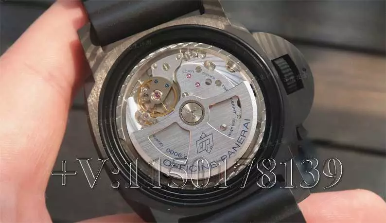 VS沛纳海1616底盖上刻有慢速鱼雷标志,打开后盖底部还会发现有一层刚内圈,这是为了加强防水效果而设计的。翻开手表后盖,能够清楚的看到手表外部搭载的机芯,是VS版本搭载P.9010机芯,此款机芯是由VS订制,采用双发盒双向上链,动储能力超强,性能稳定,同时具有与原版一致的快调时针功能。机芯走时精准,稳定性不错,返修低。