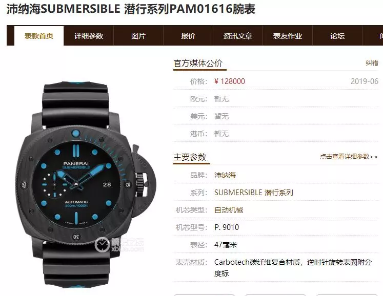 官方型号:沛纳海SUBMERSIBLE 潜行系列PAM01616腕表
