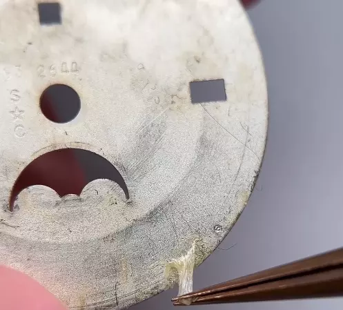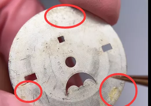 你敢相信公价近80W的百达翡丽5159万年历的表盘背后竟然沾着像鼻屎一样的东西吗?