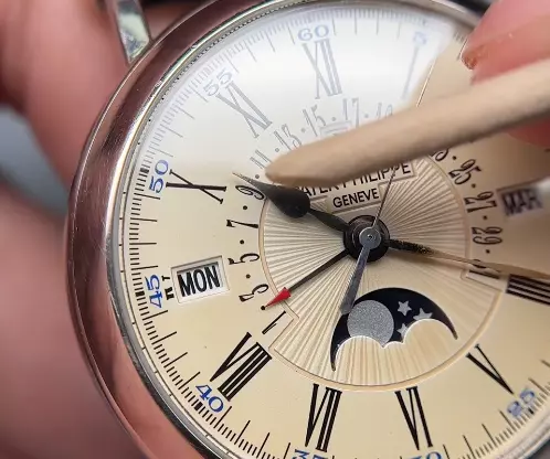 但是问题不大,这基本是百达翠丽5159的通病,见过好多指都是指针镀层掉了