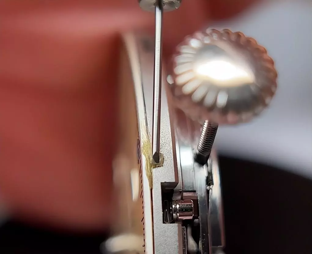 螺丝槽口一塌糊涂,表扣上的螺丝已经干废,幸好能拧下来