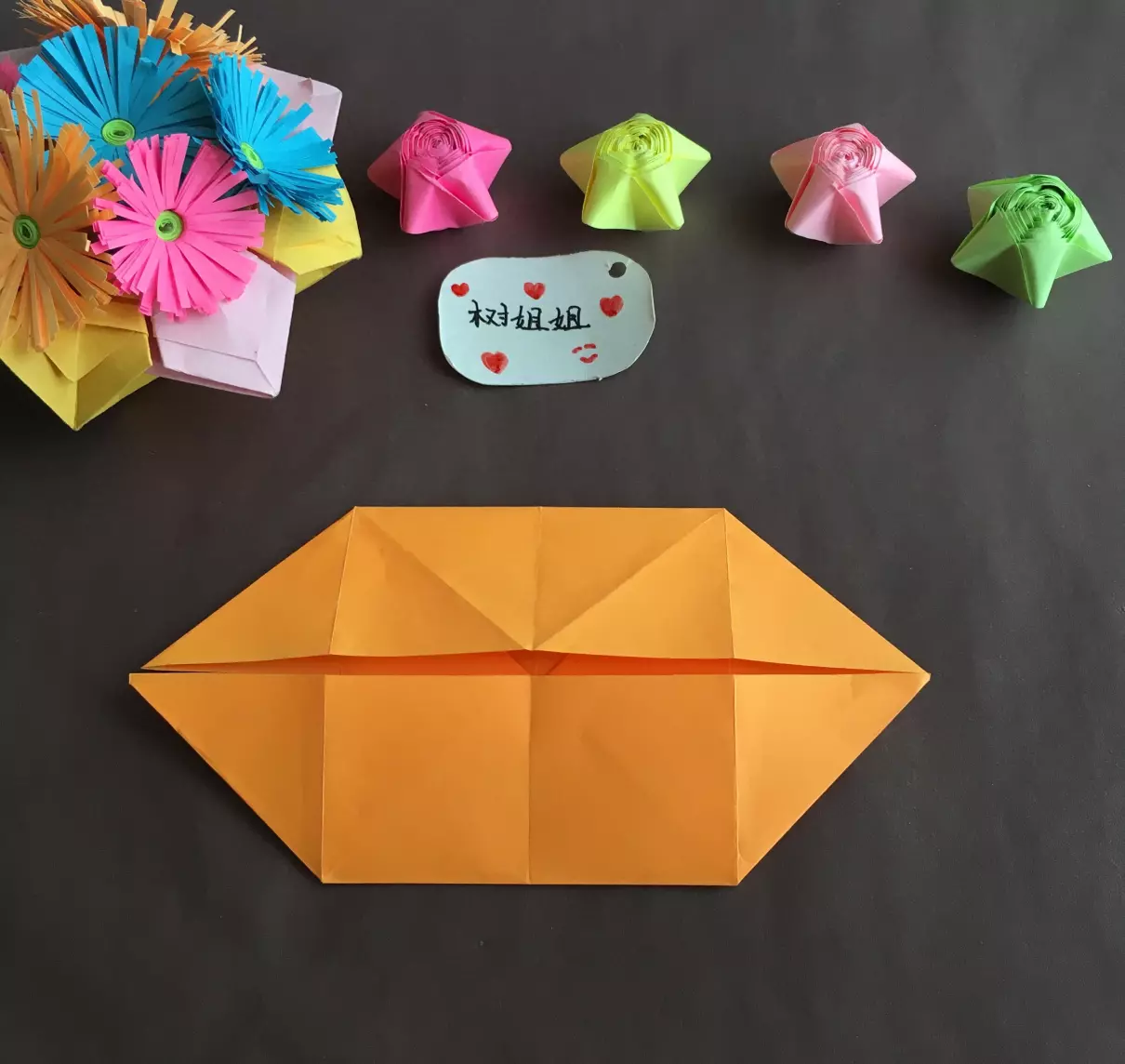 10、第9步折完后的效果,到这一步帆船已经折好了,将折纸顺时针旋转90°就可以了。