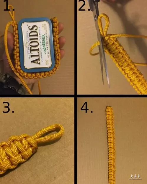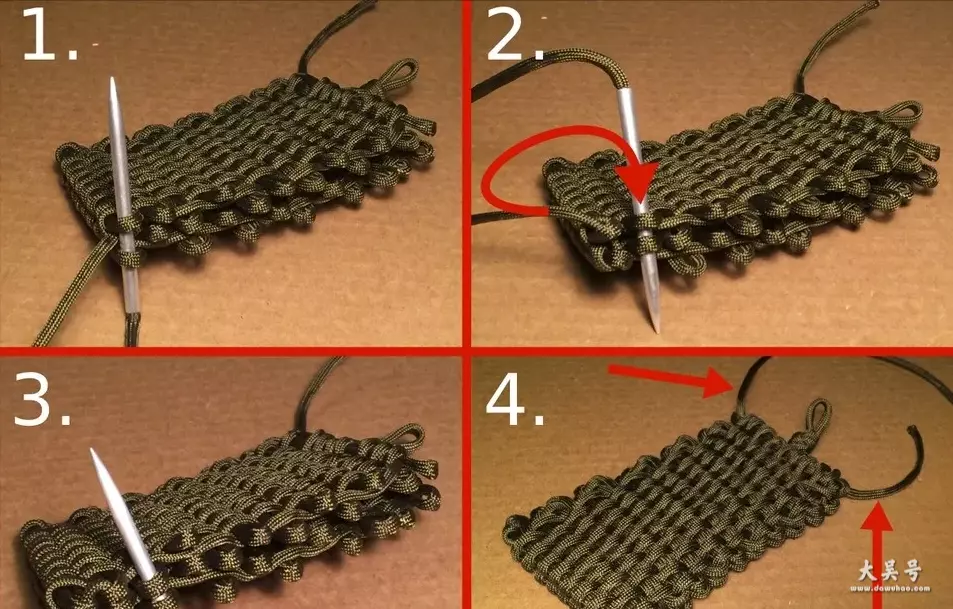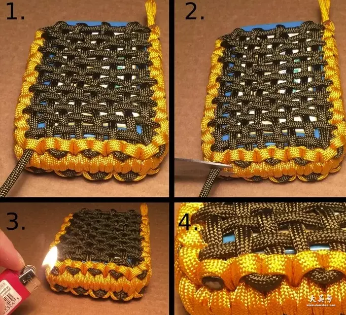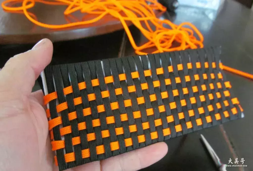 用绳子对折量一下需要编的长度宽度,根据不同的物件进行调整。