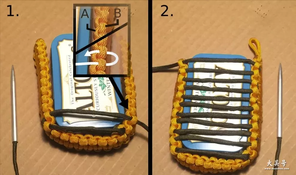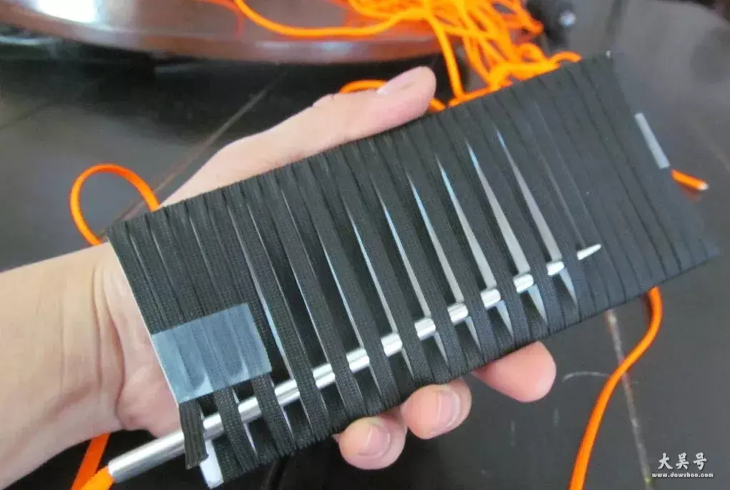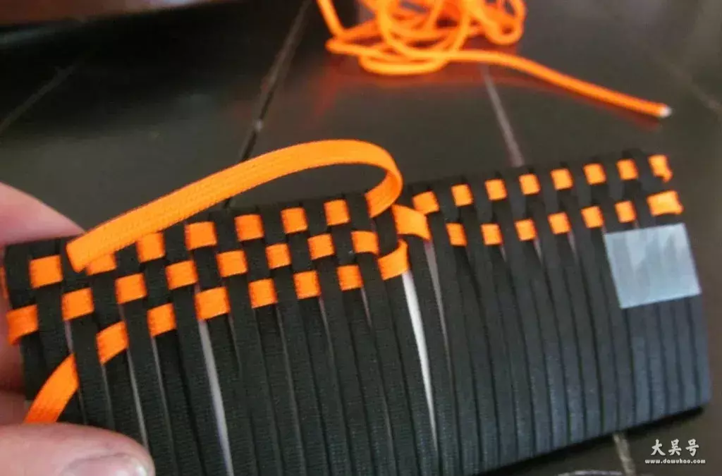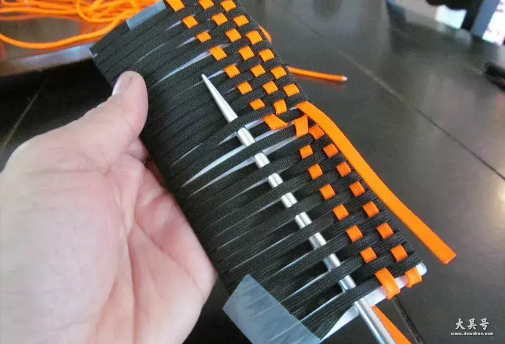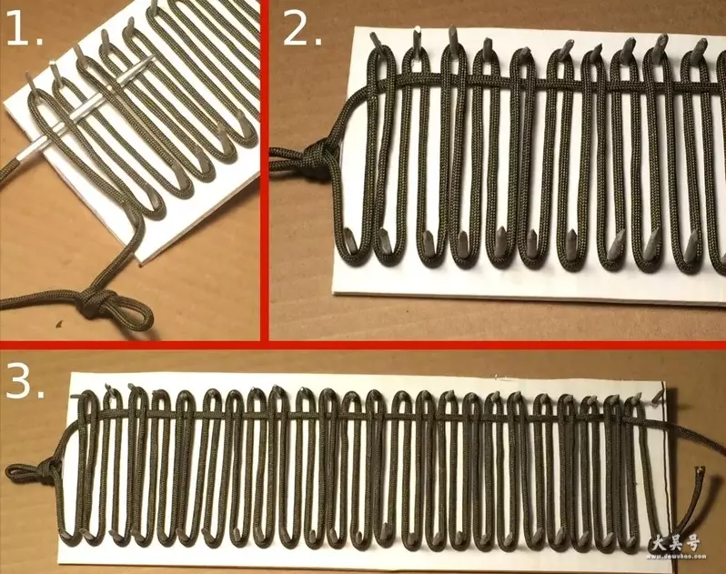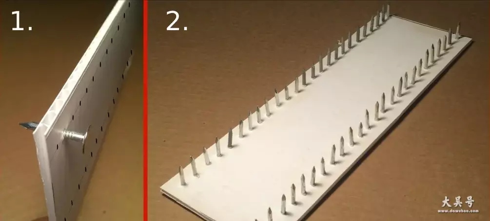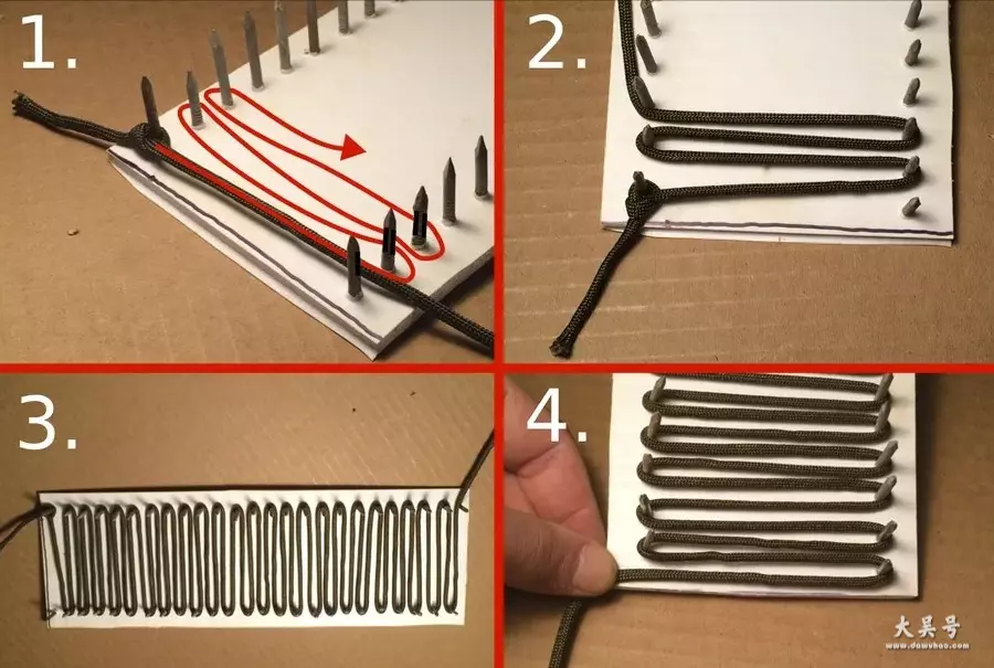 可用纸板或泡沫板钉上钉子做编织器来编。