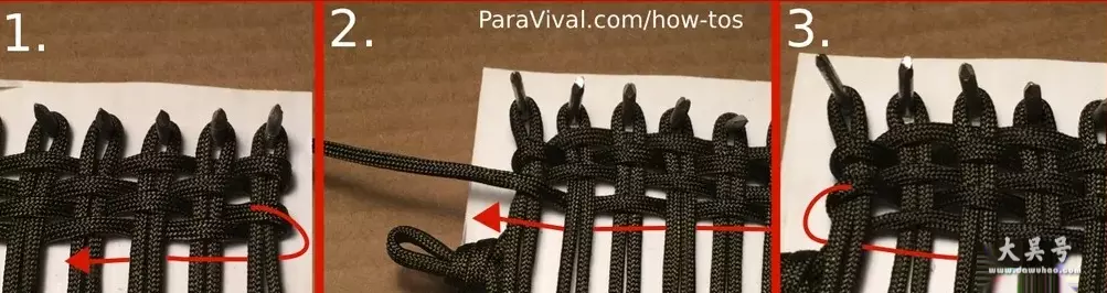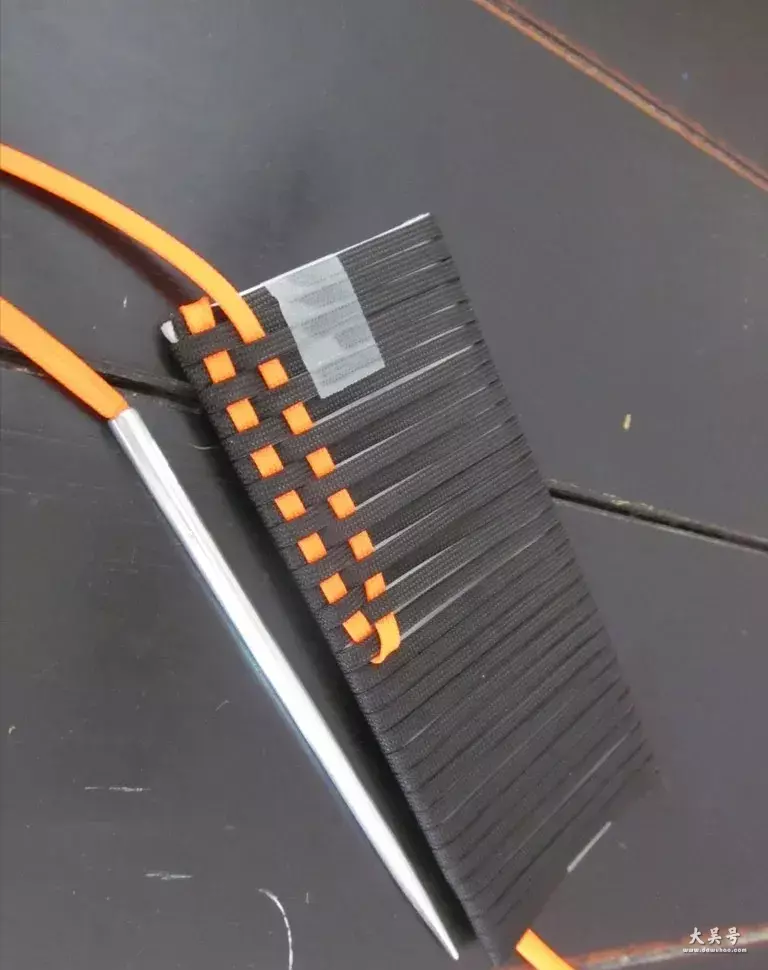 然后用针穿上绳子,在编好的那根绳子里穿插成十字形。