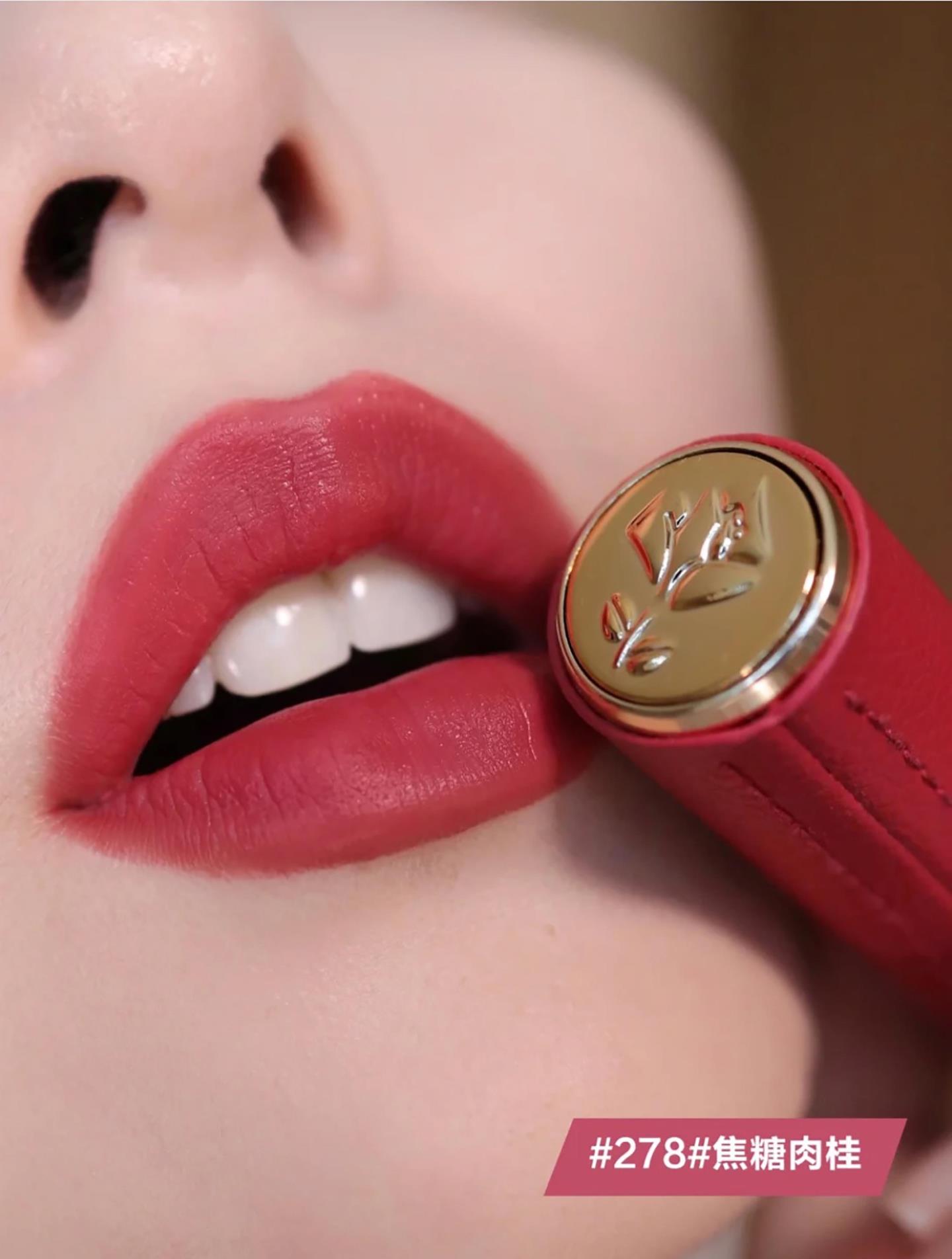 302是带着一点暖红调的豆沙色,和其他豆沙色比起来它对黄皮更加友好,抬气色的同时又不会显老,反而优雅得不行。
