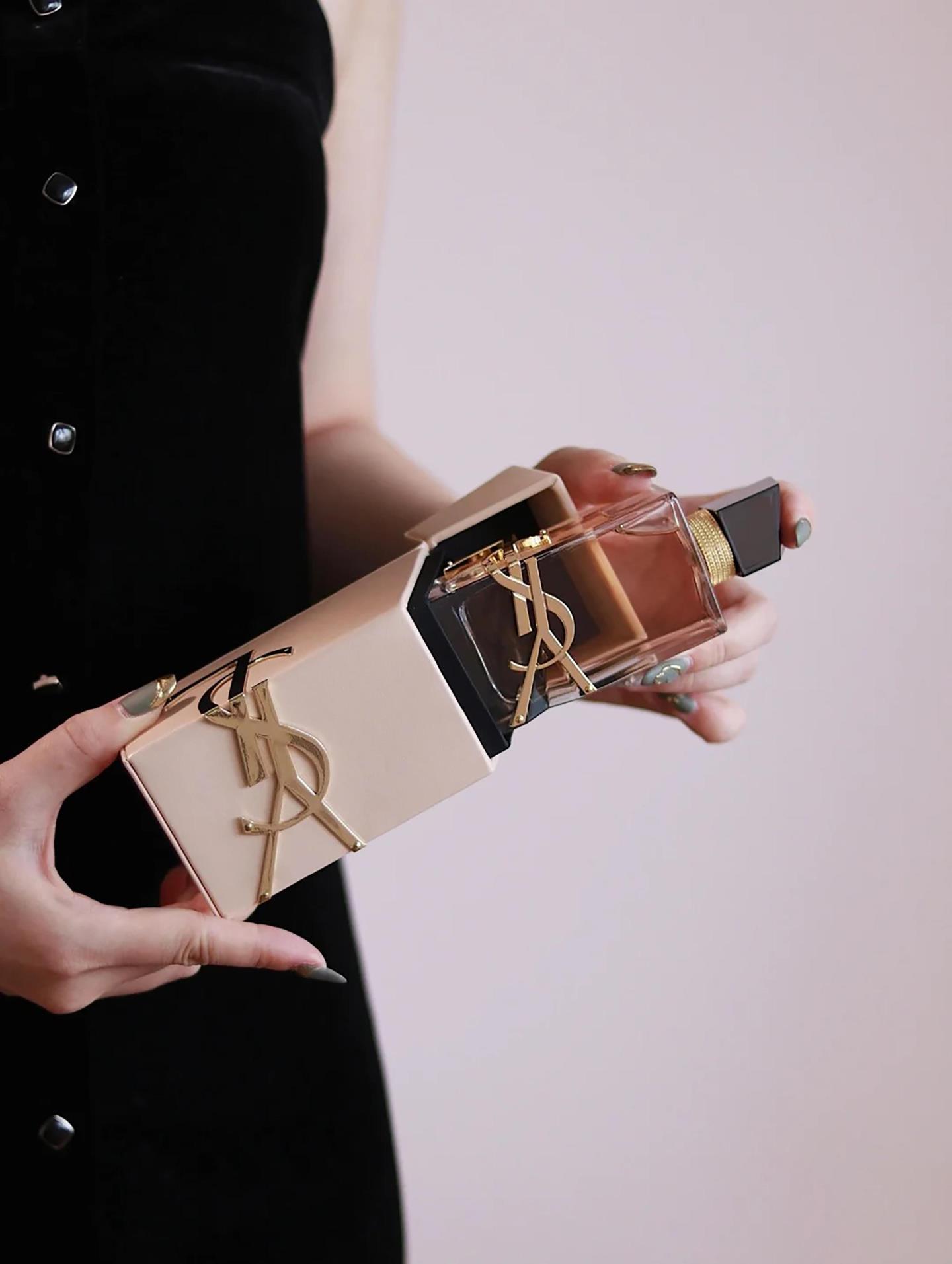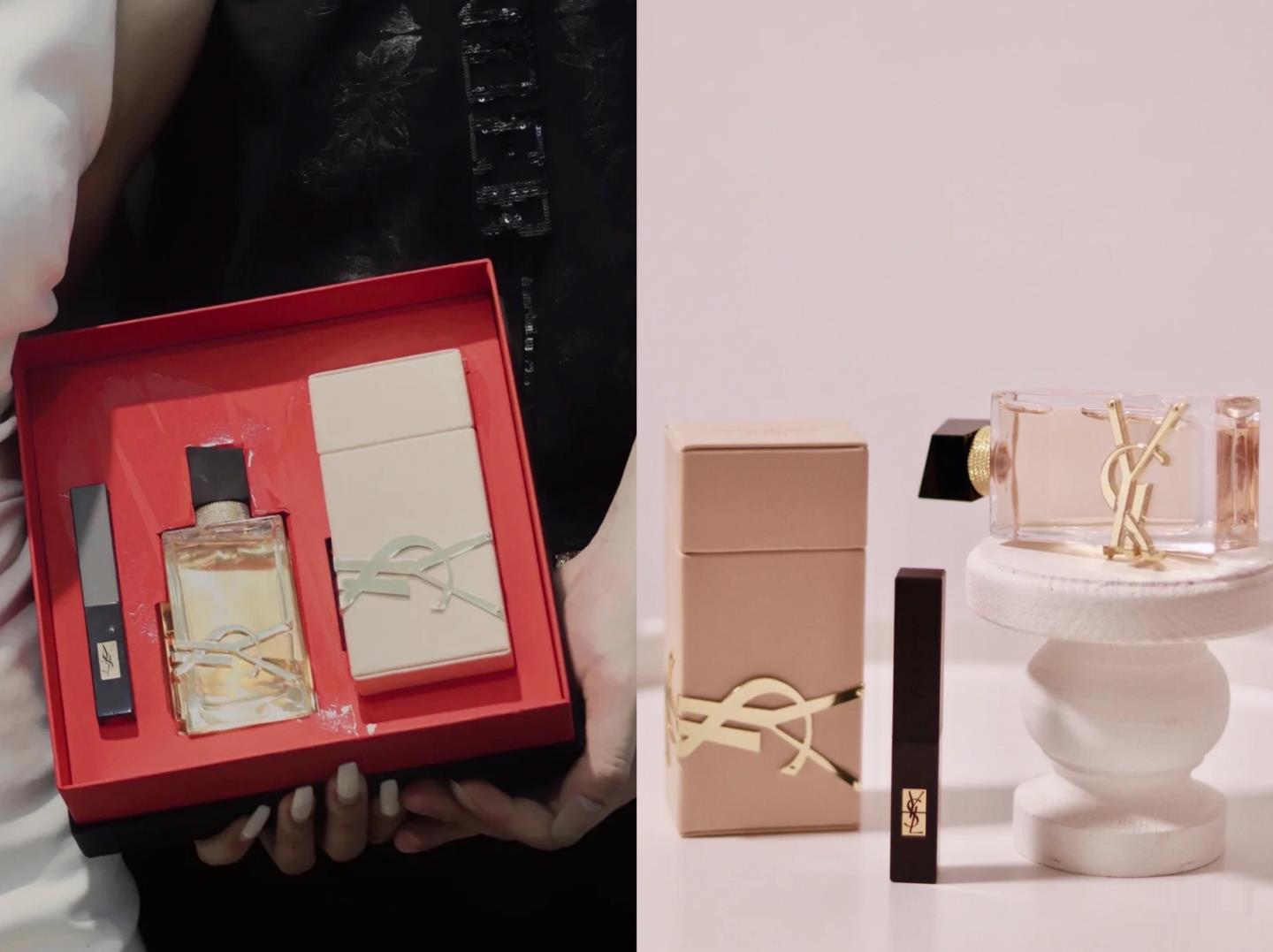 而礼盒里的小东西也非常的nice,一支口红、一支香水还附赠了ysl春夏限定裸粉香水包,这哪个女生看了能不心动吗?
