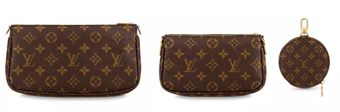 关于Pochette这个款式,其实它在1992年才变成一个独立的包包款式,之前它都是作为一个子母袋中附属袋的存在(Noé等一些款式的附属包袋)。而这款"三合一"包包就是把这些配饰包凑在了一起,加上配饰,有种花买一个包包的钱,get了3款LV的包还额外送了两个配件。