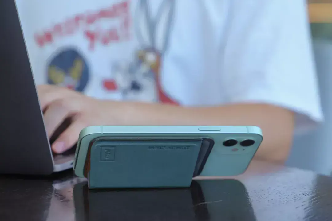 美国NuPhy磁吸手机支架卡包整体厚度仅有5mm,能无缝贴合手机。