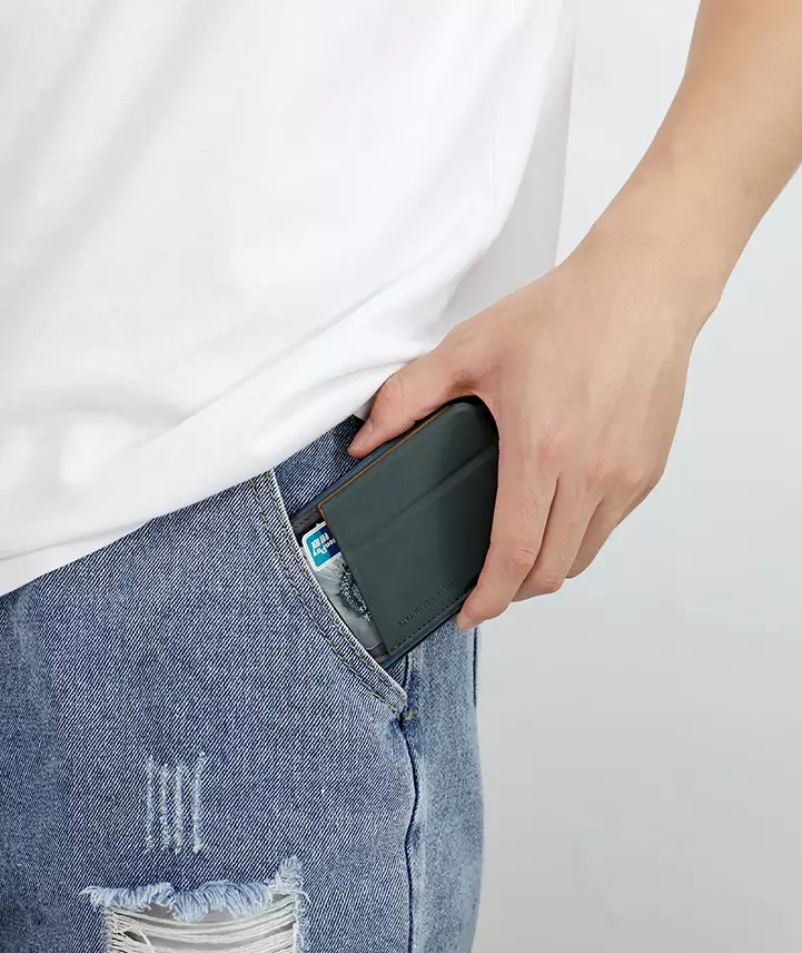 首先,它是一只超薄卡包,隐形式卡片空间设计,可放2-5张卡,或少量零钱。