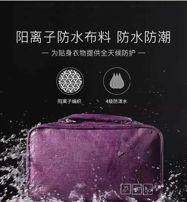 有了它根本不用担心这个,采用阳离子防水布料,表面做了防泼水处理,达到了4级防水,这意味着哪怕你带着它淋浴,都不会有一滴水渗进去,保证衣服永远都是干燥清爽的,拒绝霉菌的侵袭!