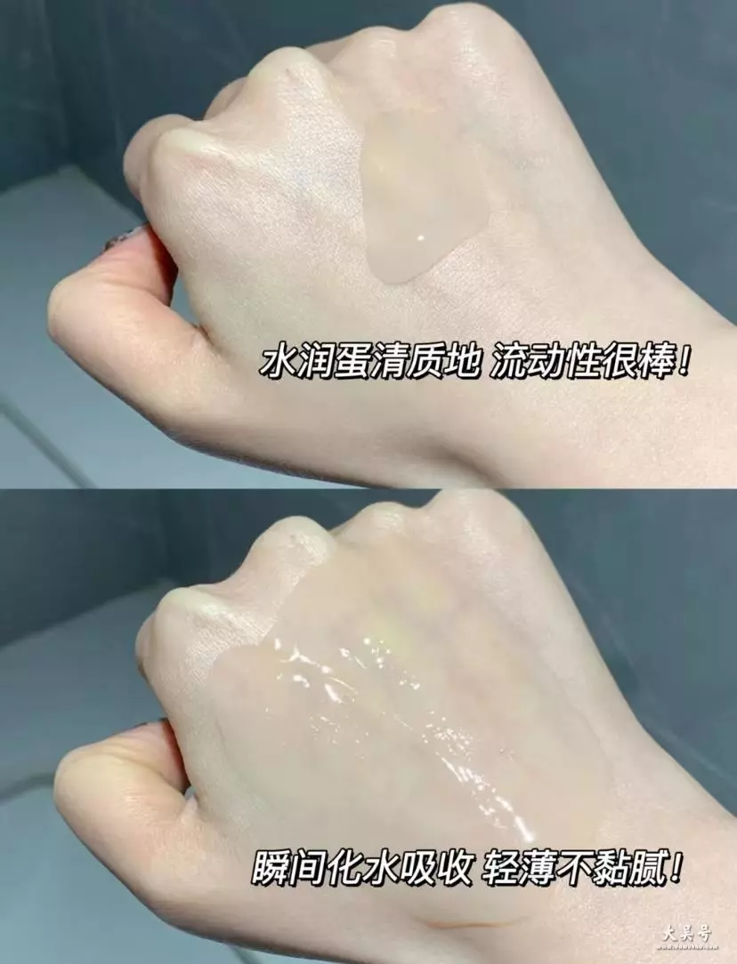 这款精华是蛋清的质地,轻薄不粘腻,流动性也很好,温和无刺激还不用建立肌肤耐受,不管是敏感肌还是孕妇都可以放心使用。