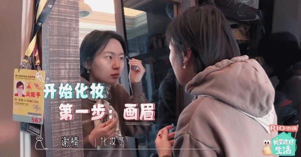 一开始还以为她是在谦虚,没想到昕昕子确实很耿直了,看看她这个上妆手法,画眉毛为了省事,直接刷眼影,只求一个“快准狠”,完全不考虑眉形和眉毛的颜色,相当地简单粗暴。