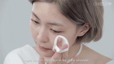 妆前搞定之后,就可以正式上妆了,拿出粉底液或是气垫粉饼上妆,从面中往外拍开,更可以打造自然的立体瘦脸效果,不用涂抹修容就能很显瘦。
