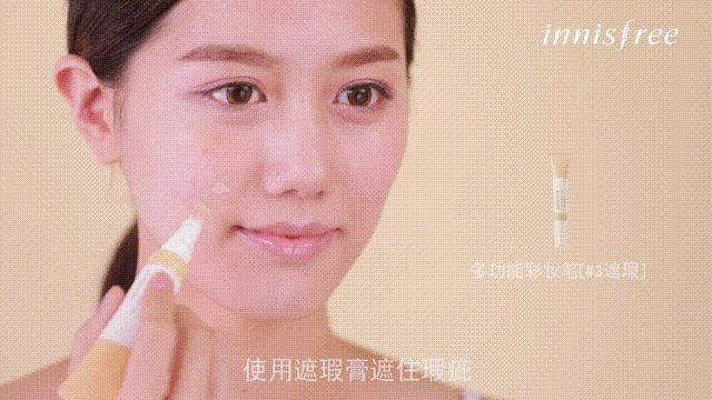 接着再针对黑眼圈、泪沟、痘疤进行重点遮瑕,运用先粉底再遮瑕的方式,也可以减少遮瑕用量,让底妆看起来更轻薄。