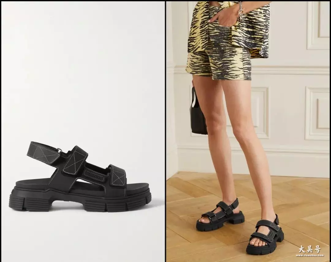 运动凉鞋底都会比较厚,今年有些牌子把底做得又更厚了一层,风格更帅气,不过有些也容易显得廉价,要好好挑才行。
