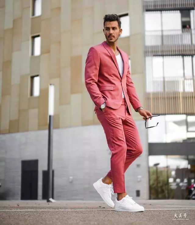 亮色西装似乎很少有人敢于尝试,事实上这种粉色西装更适合肤色白皙一些的男生。如果是黄黑皮男生穿上这种粉色西装,就会有一种"死亡芭比粉"既视感。当然,这也不局限于白皮男生专属,肤色健康的男生,例如小麦色和古铜色的男生,穿上这种粉色西装反倒有一种反差萌,整个人显得时髦又前卫。