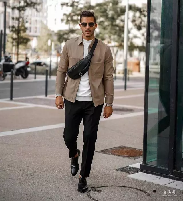 夹克衫+t恤的魅力穿搭,日常又充满时髦感的单品组合实用性很高。如果是和白t相搭配,最好就选择浅色版的夹克衫外套。两种浅色系的搭配看起来更具洒脱清爽的气质,如果是肤色像这位时尚男博主一样偏黄的人,选择这种浅驼色光泽感的夹克衫就很棒。