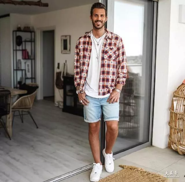 不满足于低调风的黑白配,试一试充满潮流元素的衬衫look也很棒!加入亮色的格纹衬衫都会给人一种随性又洋气的感觉,再搭配一件白t就很棒,清爽与潮范儿交织的感觉已经被贴上了夏天的标签。上身既然搭配了宽松感十足的衬衫+白t,下搭单品最好就选择修身款的短款。牛仔裤就是一个很好驾驭的百搭款,再搭配一双小白鞋,这身造型的包容性就很强大了~