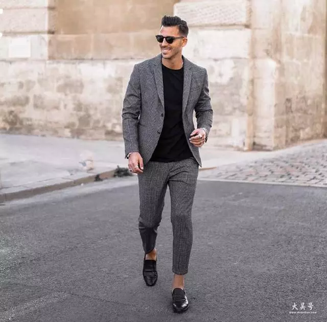 西装作为男士基本上人手一套的基础款单品,其地位就和女孩子的连衣裙一样。但是穿西装的时候怎么跳出职场装既视感,这位法国时尚男博主就来开课啦!想要西装穿出日常又潇洒的帅气感,选择修身款是重点!用浅灰色西装搭配同色西装裤,如果身高不出挑的男生更要注意选择修身的九分裤,露出脚踝搭配深色皮鞋,整个人的儒雅绅士感就很自然。