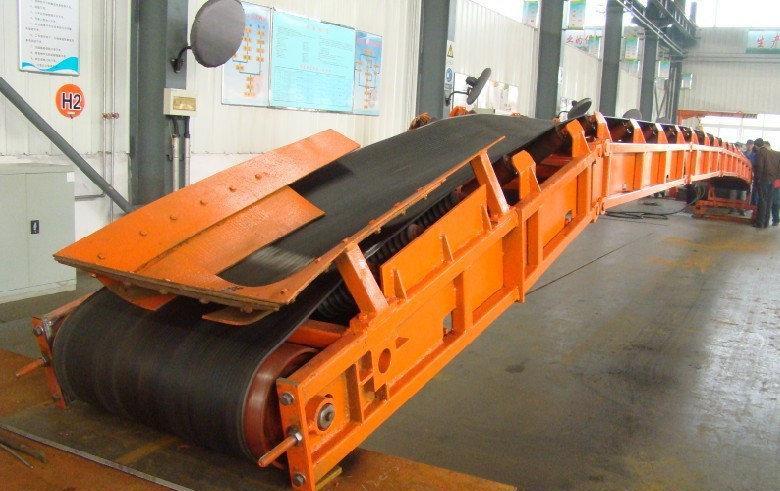 行走式掘破转载连续运输成套装备(以下简称掘锚机牵挂二运皮带转载成套设备)是专为煤矿井下巷道掘进设备掘锚机组设计研制的成套后配套装备。