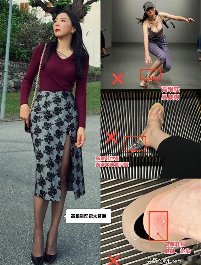 同样的挑战也出现在高跟鞋上。磨脚、挤脚是小问题,高跟鞋一旦出现断跟等质量问题,那才是真社死。