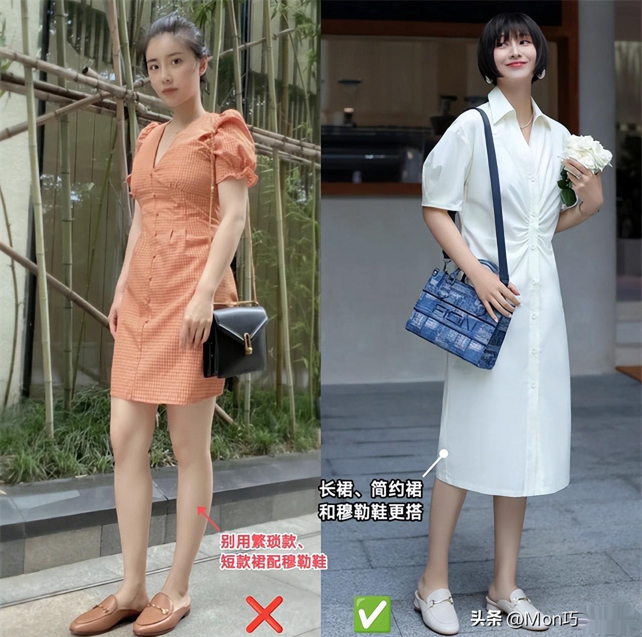 为何今年时髦精穿裙都不带凉鞋和高跟鞋玩了?答案很明显,都写在上图的对比中了!
