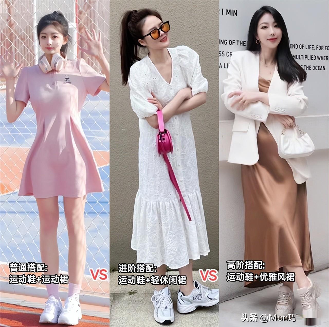 说到运动鞋的搭配,很多人第一时间会想到配polo裙、牛仔裙等休闲风裙装,但这只是“入门级”穿法。