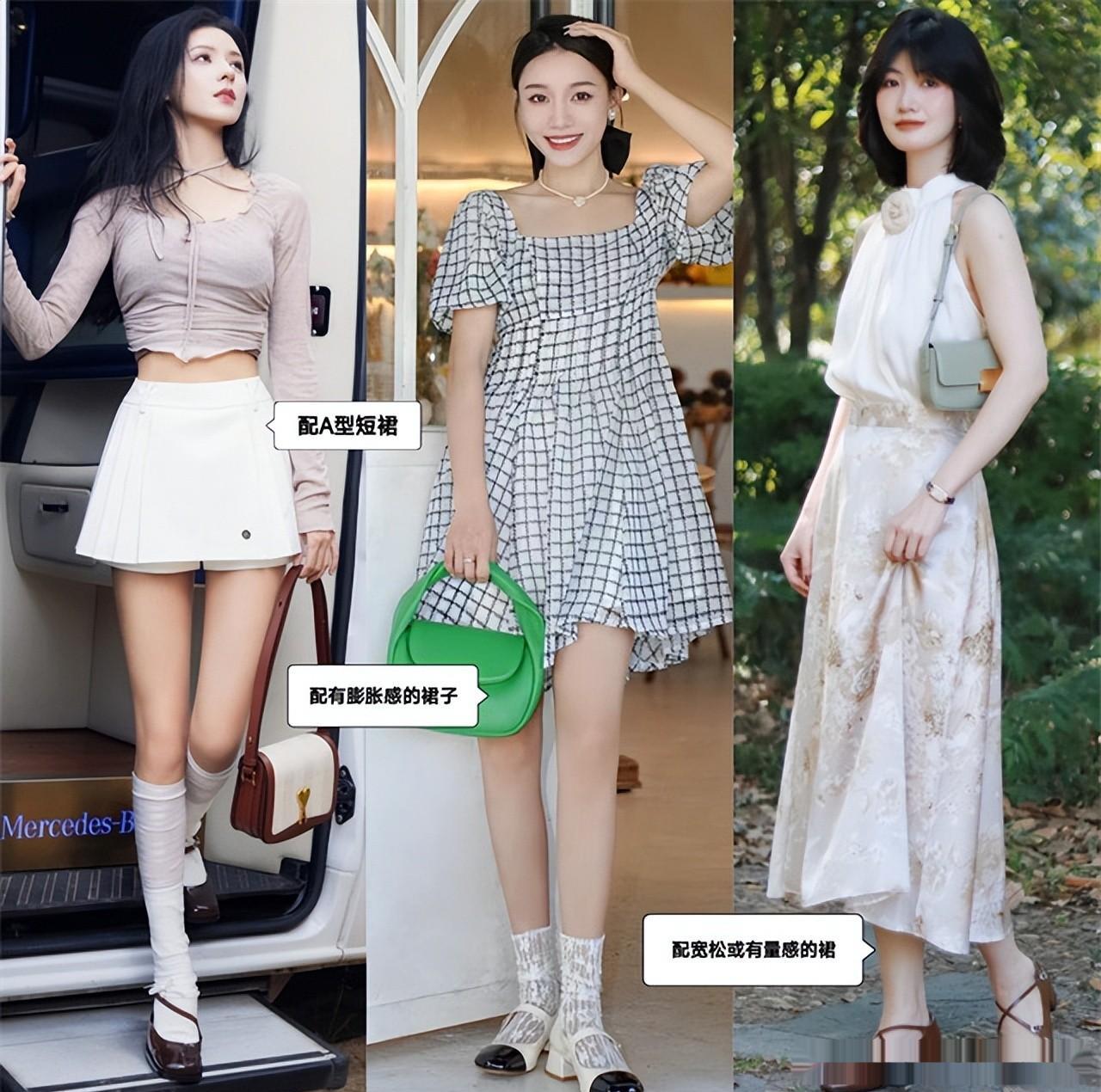 不同鞋有最合拍的裙,不同人也有最合拍的搭配方案。比如矮个子女孩比起凉鞋,像偷穿了妈妈鞋子的高跟鞋,选精致小巧的带跟玛丽珍、浅色运动鞋配裙更洋气。