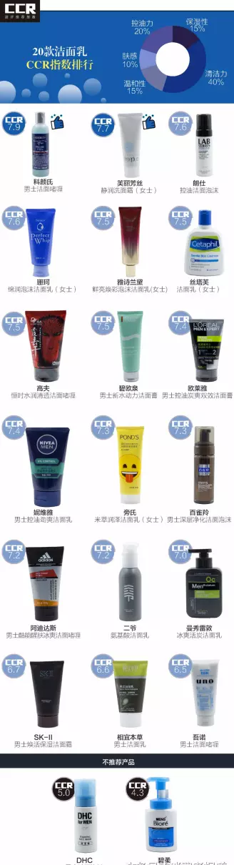 为了回答这个问题,消道长搜罗了市面上15款主流男士洁面产品,品牌包括欧莱雅、相宜本草、曼秀雷敦、高夫、科颜氏、朗仕、二爷、DHC、阿迪达斯、百雀羚、SK-II、妮维雅、碧柔、吾诺、碧欧泉等,还另外加入雅诗兰黛、芙丽芳丝、珊珂、丝塔芙、旁氏等5款非常受欢迎的女士洁面产品进行对比。
