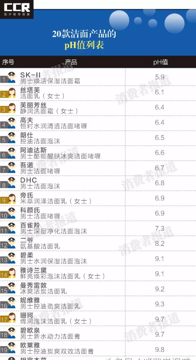 本刊测定的pH值结果显示,SK-II、丝塔芙、芙丽芳丝、高夫等洁面产的pH值在6左右,接近皮肤的酸碱值;包括相宜本草、欧莱雅、碧欧泉等在内的8款洁面产品PH值大于9。所有产品的PH值均在标准范围之内。