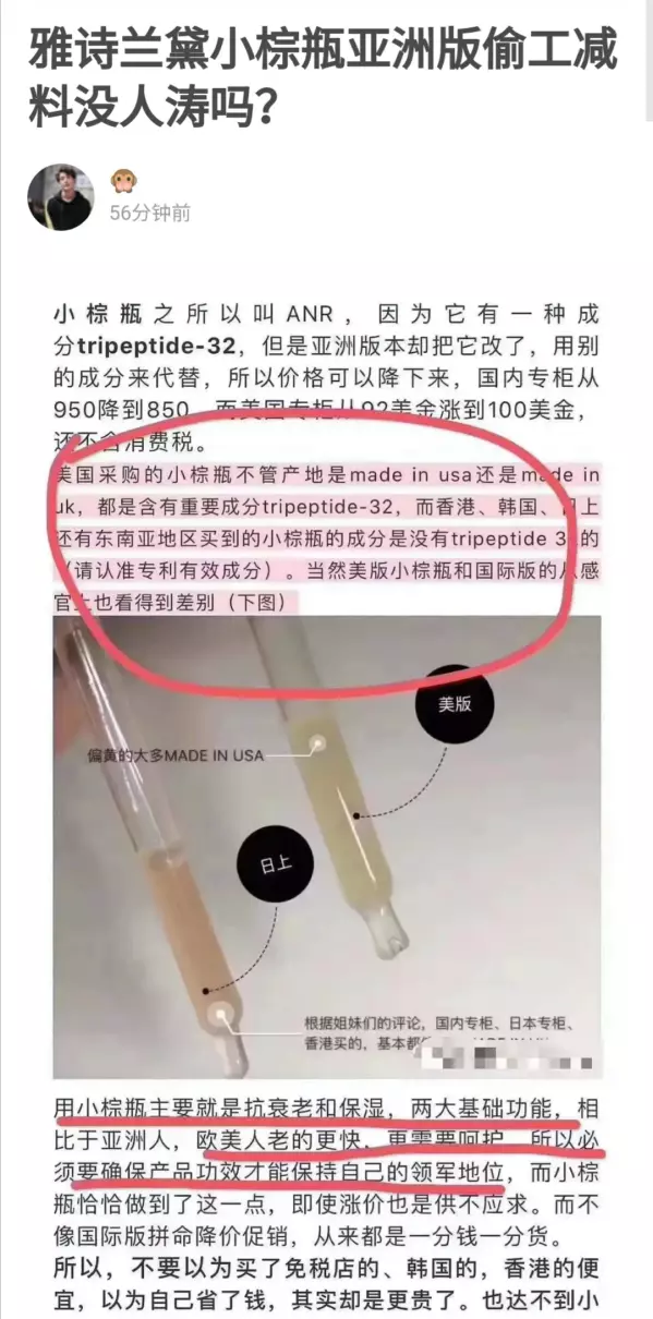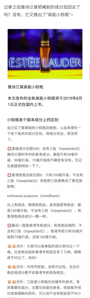 最近雅诗兰黛小棕瓶又被扒亚洲版和美版成分不一样,这到底是怎么回事?