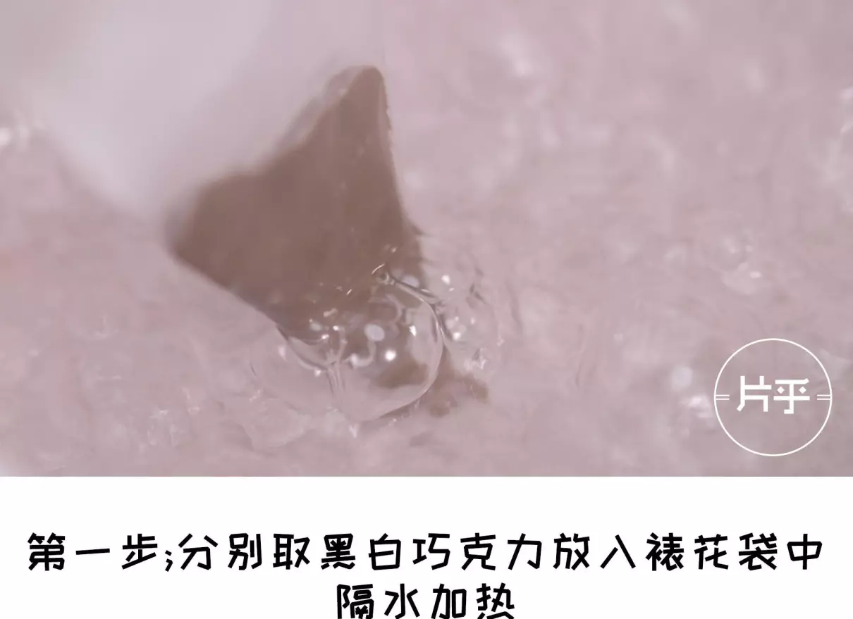 第一步:分别取黑白巧克力放入裱花袋中隔水加热。