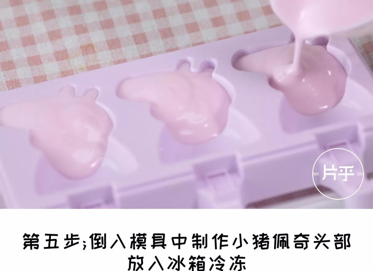 第五步:倒入模具中制作小猪佩奇头部放入冰箱冷冻。