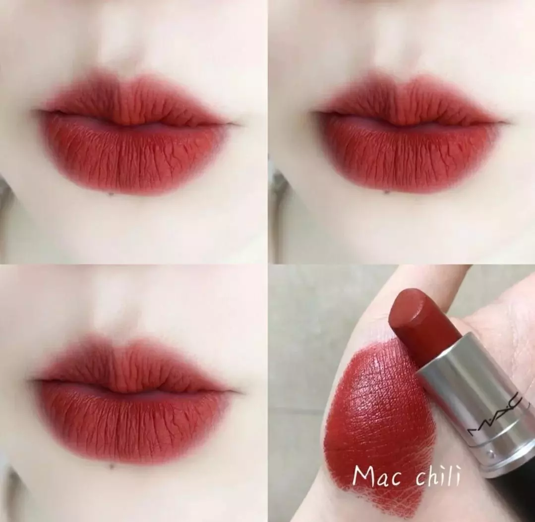 这只的色号真的太火了,各大网红博主几乎全都推过这一只口红,各位小仙女对这只色号相信也不会太陌生。这款色号薄涂是有点玫调的红色,适合素颜时涂,可以瞬间提升气质,厚涂是显白的正红色,超级有气场,无论是薄涂还是厚涂都是美到没边。这是一只每个仙女都必须拥有的颜色,超级超级显白,正红里无可挑剔的颜色。虽然是哑光的质地,可是极其好推开,质地是哑光雾面的质地,气味也是mac特有的巧克力的味道,非常非常显白,黄皮小仙女们的必备了。