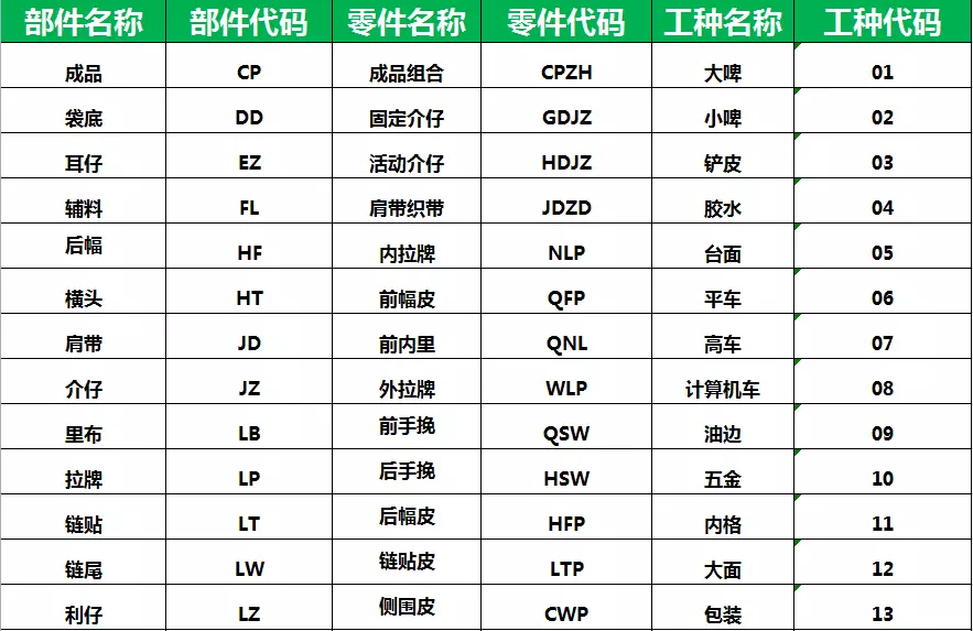 3、老师对产品的部件名称、部件代码、零件名称、零件代码、工种名称、工种代码进行了规范称呼及编码。