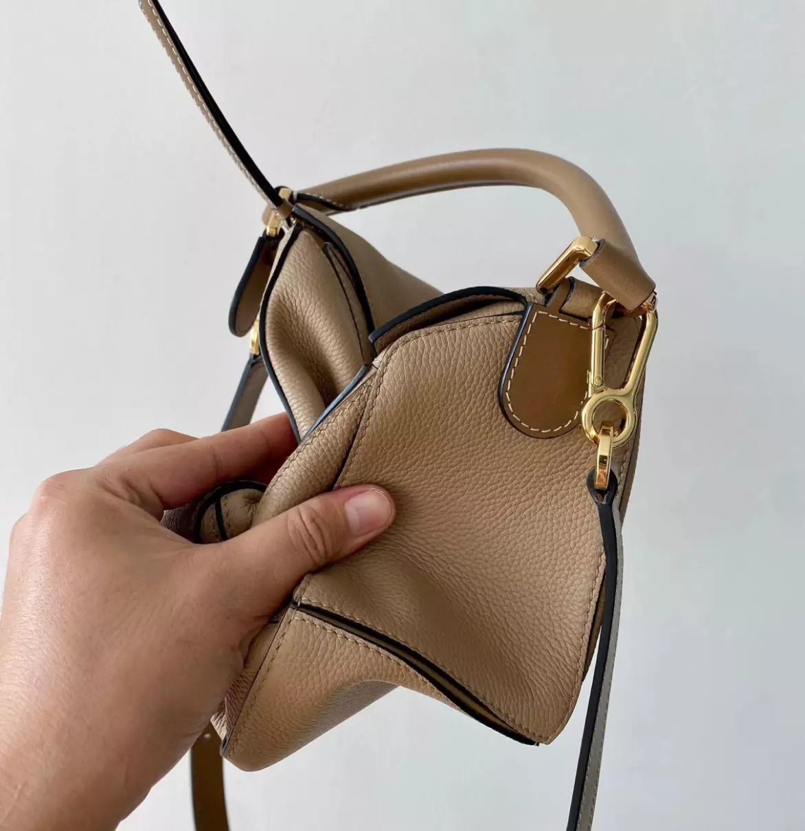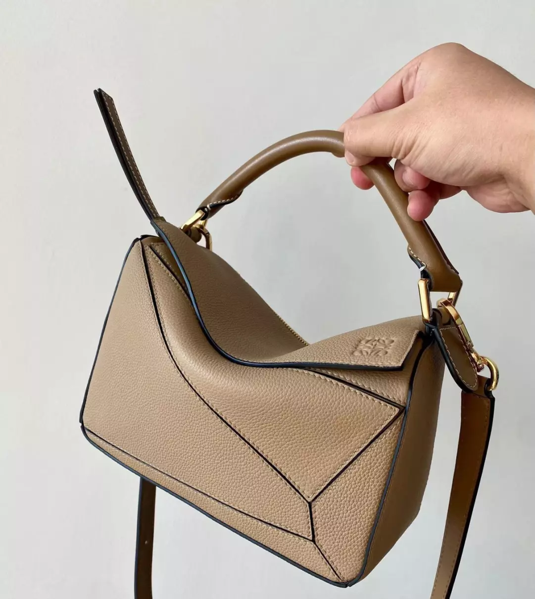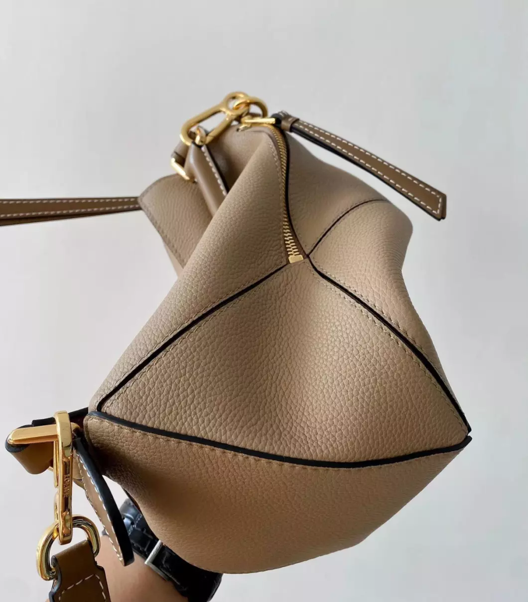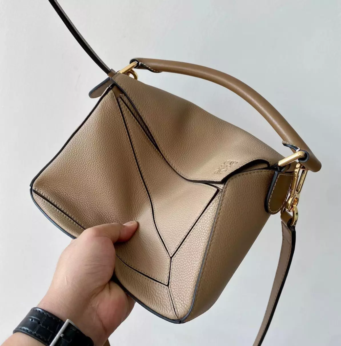 要说LOEWE的当家系列:Puzzle系列和Gate系列!PUZZLE Bag:第一个要说的是PUZZLE,有mini、小、中、大4个size,看着不大但容量相当惊人,这款包其实是2013年9月上任的80后创意总监Jonathan Anderson为Loewe全新打造的手袋系列,可调节可拆卸的肩带,可手提、可单肩背、可手拿、可斜挎,五种背法让人觉得这一个包真是太值了!