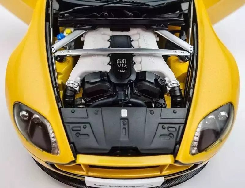 V12 Vantage S是基于V12 Vantage的特别版,真车当然有很大出入,但是模型方面基本上是换汤不换药,或者根本就是换个色,改改蚀刻片。所以做工水平也是跟之前一样的。四开,前后液压杆,金属关节,合叶门,整体来看也是挺不错的。其实我在2008年左右拥有过一款AA产的V8 Vantage,后来出了,因为时间太久,我也忘了那车做工如何了。