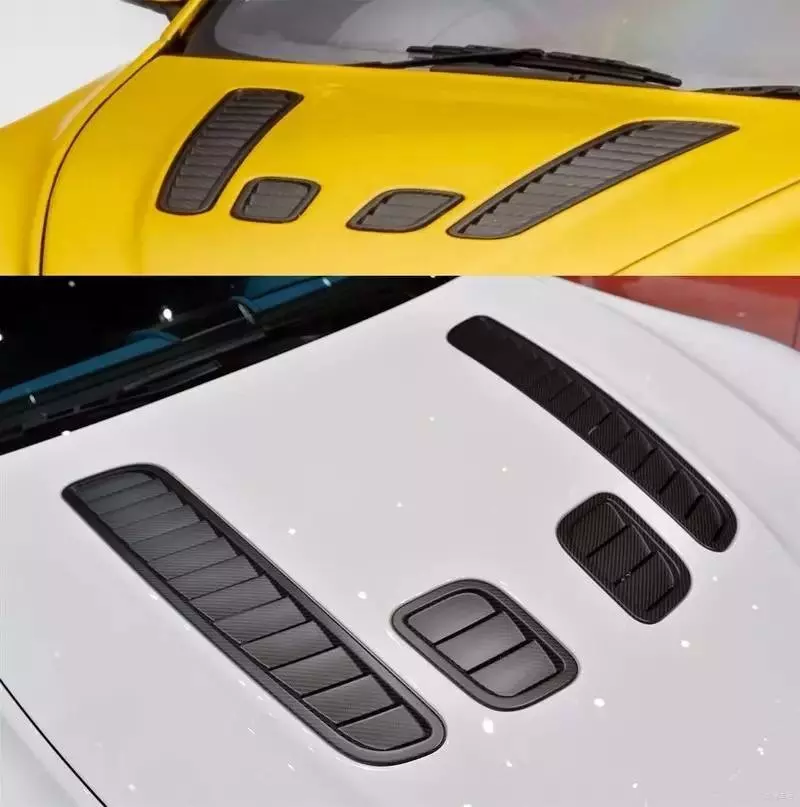引擎盖上方的散热孔,也有碳纤维部件,质感不错。