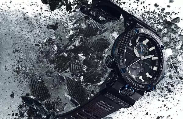 G-SHOCK也为飞行员设计外型与功能都强悍的GRAVITYMASTER飞行表GWR-B1000,运用碳纤维强化树脂打造一体成形表壳,搭配堆叠52层垂直与水平方向碳纤维的表圈、碳纤维树脂表带与钛金属按钮,整只表仅72克,比过往轻盈不少;内采蓝牙智慧连结与世界六局电波接收技术,并配合飞行员需求,搭载飞行日志功能,操作腕表的按钮即可纪录当下时间与位置资讯。