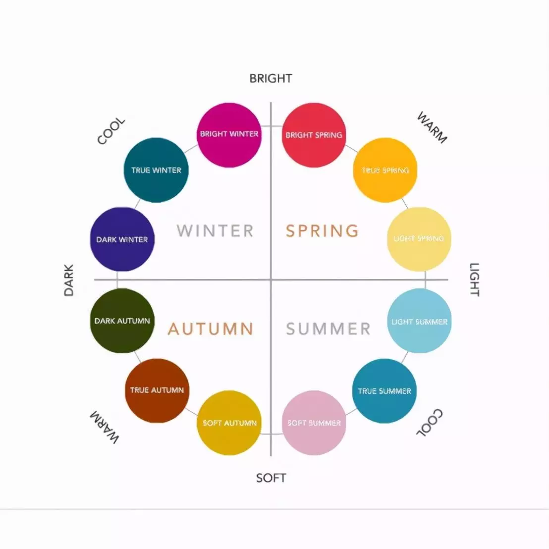 “四季色彩理论”是由英国的一位女士发明的,后来又引入中国,它的到来引起了时装界的热烈反响,它将时尚的里程碑往前推进了一大步,它是根据不同的类型分析,组成的四大色彩群,而这四大色彩群又和四季的色彩吻合,因此就将这四组色彩群命名为:“春”“夏”“秋”“冬”。