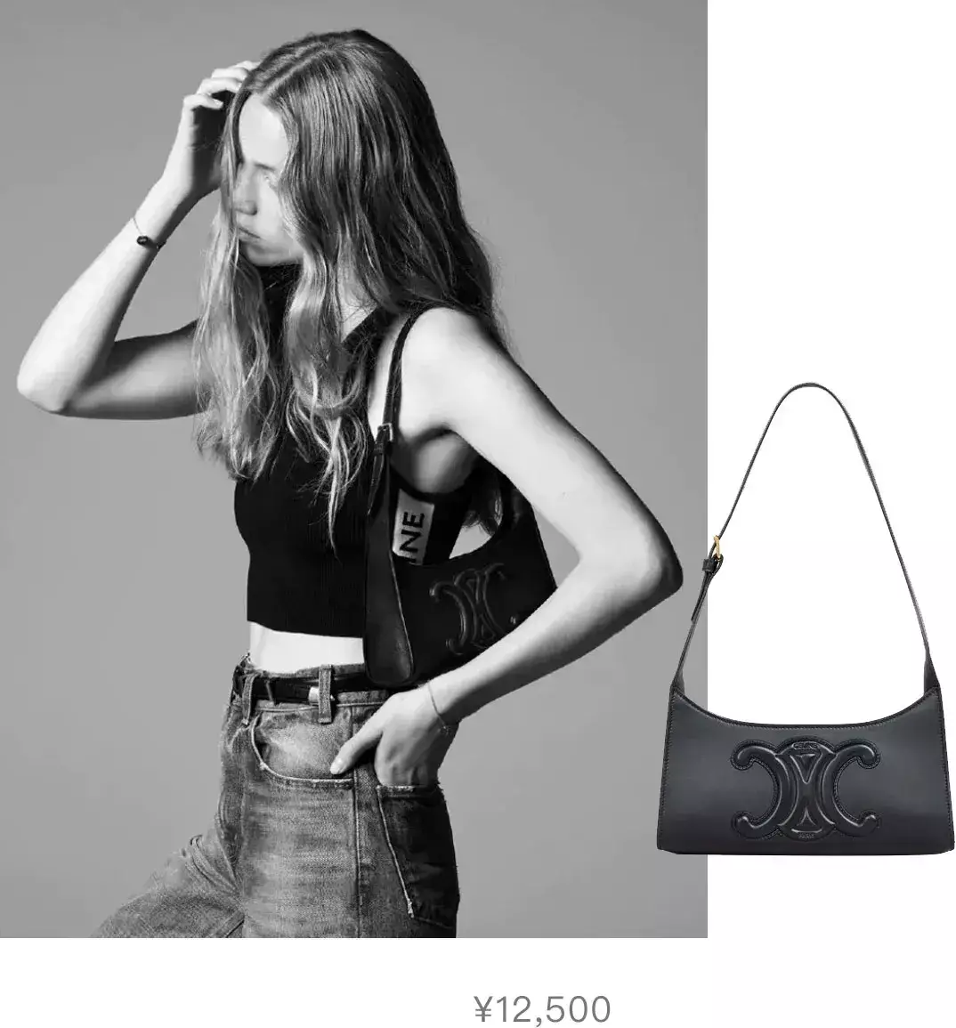 不过他并没有泄气,一方面开始找各种明星为凯旋门肩背包造势,另一方面又设计出了更加洗脑的Triomphe Canvas标志印花系列。