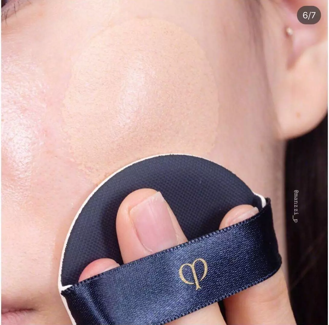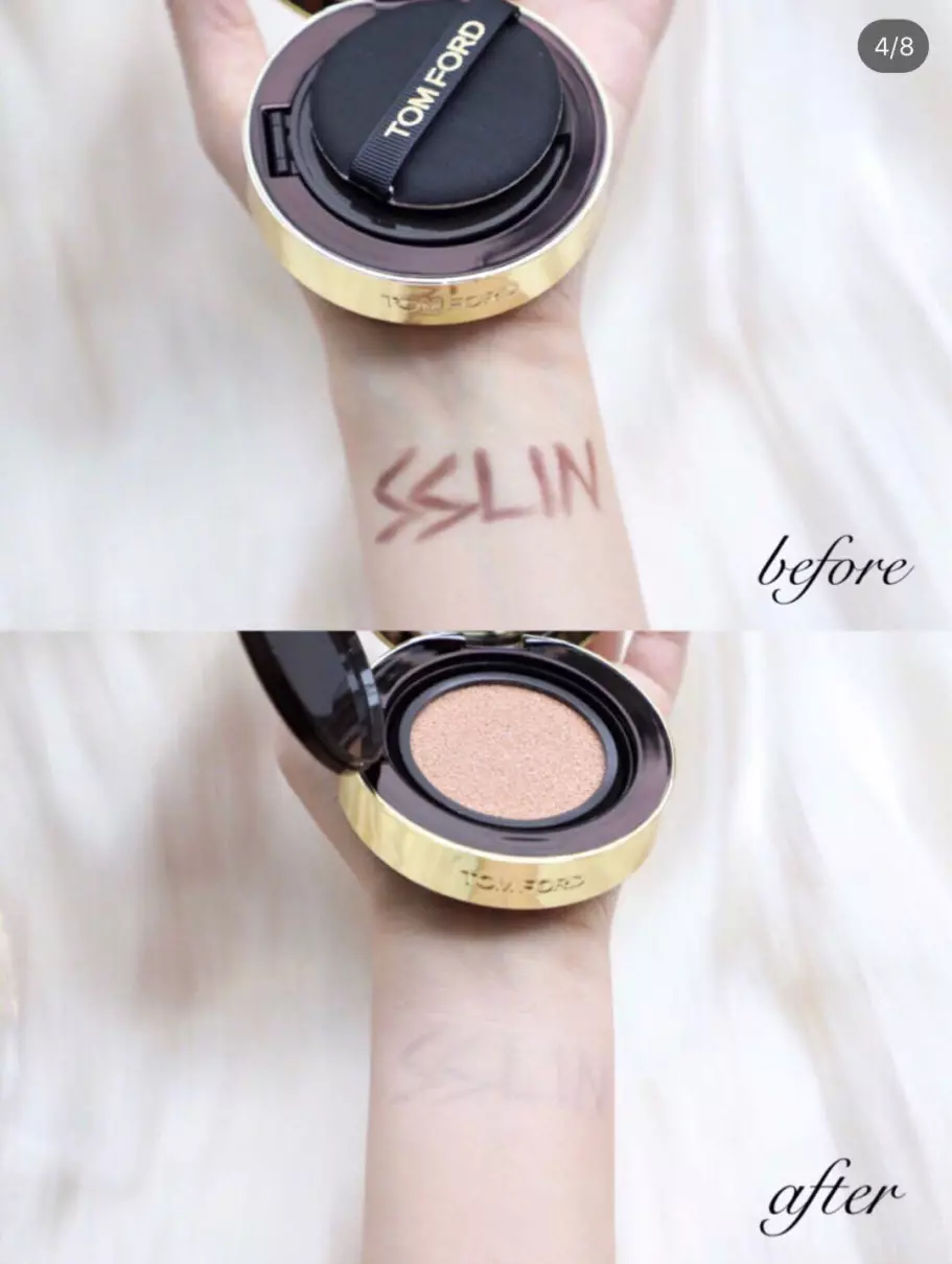 气垫质地很丝滑,上妆是半哑光感觉,隐形毛孔!持久度也蛮好的,整体妆效很有高级质感。这款气垫和平时气垫的上妆方法也有所不同,一点二抹、三拍匀的手法。先取粉点涂在脸上,然后沿着皮肤纹理推开,最后再将全脸拍匀。它的最大特点就是利用了TF的光影美学,让妆面看起来更细腻立体。一盒搞定底妆,也是我出门补妆必备啦