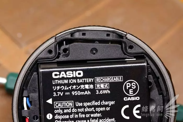 后盖下面是一块3.7v 950mAh的锂电池,型号为NP-150,和卡西欧很多数码相机的电池应该都是通用的,电池不是螺丝固定的直接就能抠下来,更换很容易。