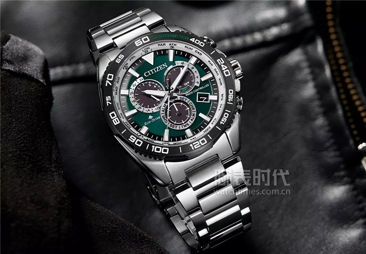 要想生活过得去,手上总得带点绿。2021年,如果没有一块绿色腕表,似乎说不过去,而适合12月的绿肯定非圣诞绿莫属了。这款西铁城CB5034-91W 光动能电波运动男士腕表采用45毫米不锈钢间GIP表壳,黑色表圈搭配白色数字和刻度,同时点缀以绿色字体。饰有太阳纹的绿色表盘搭配搭配三个黑色子表盘,墨绿色表盘让人联想到圣诞树的颜色,子表盘饰有同心圆纹路,并延续到边缘的银色刻度圈上。腕表采用大号夜光时标和指针,搭配精钢表链,运动感十足。