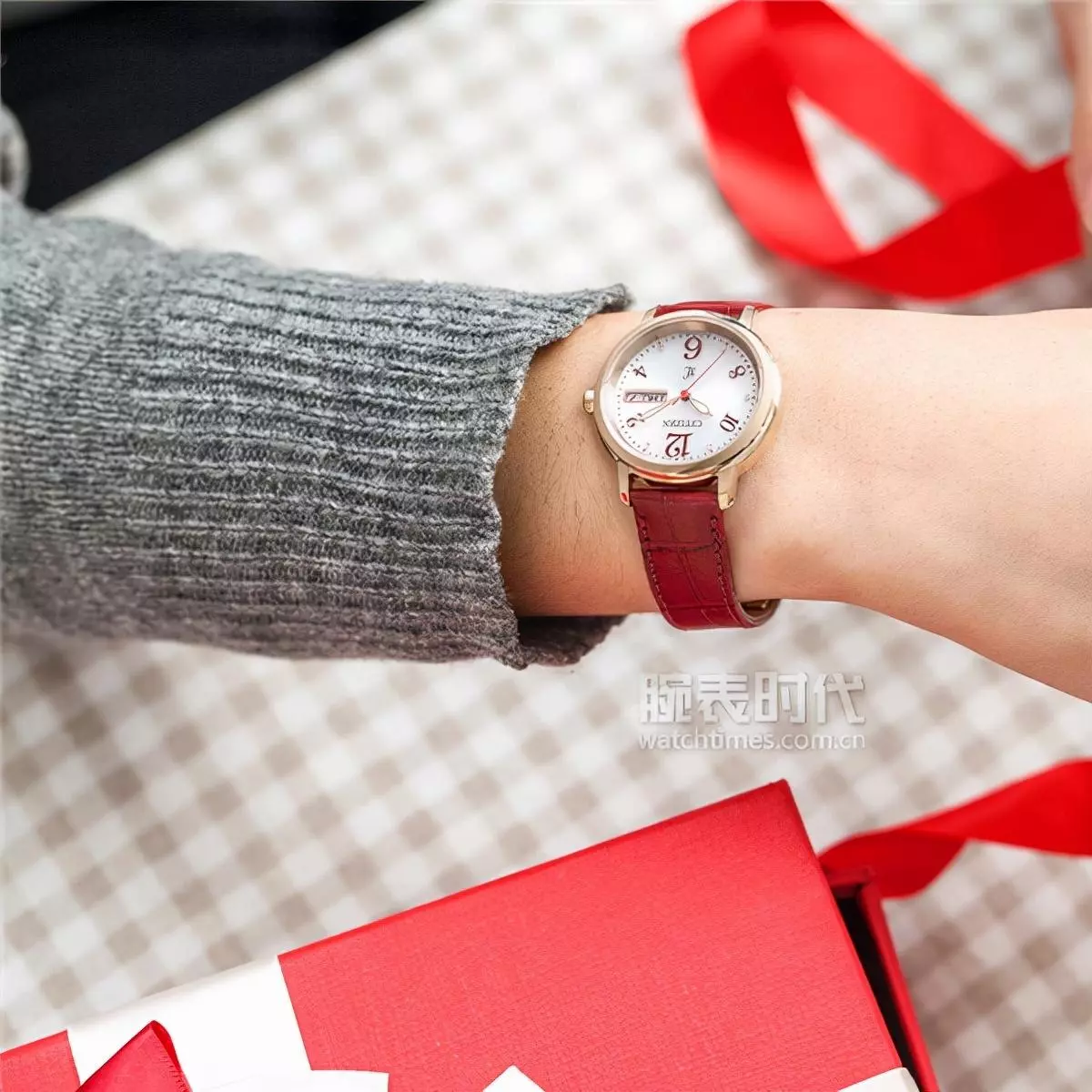 在买表这件事上,男人向来比女人舍得花钱,毕竟即使不到一个月工资,女生除了腕表,还有美妆护肤首饰等其他预算需求。因此我们给大家推荐的女表价格更加亲民。圣诞将至,春节也已经不远,这款金红配色的西铁城EW2422-12AB 光动能时尚女士腕表正合适。而且它还可以和上述绿盘男表组成红绿CP,在圣诞节秀恩爱。EW2422-12AB腕表采用32.5毫米不锈钢镀粉金色表壳,带有暗纹的银白色表盘上是曲线优美的红色阿拉伯数字时标,尽显女性的婀娜。搭配相称的红色小牛皮表带,经典又百搭。