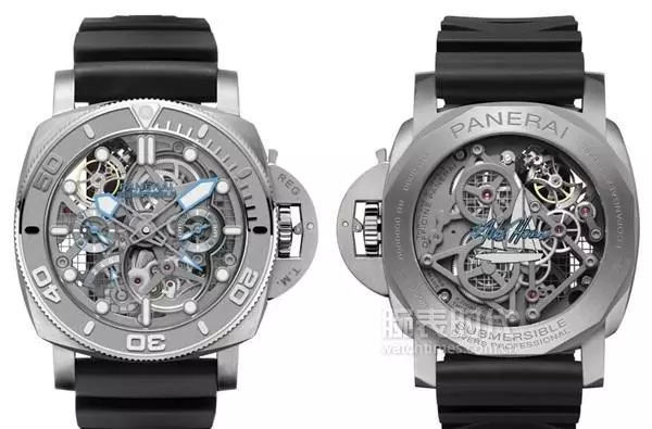 而到了今天,钛金属其实因为技术的成熟,在腕表领域已经稍显常态化了,沛纳海也没满足于普通钛金属,而是应用上了直接金属镭射烧结(DMLS)技术,咱们可以理解它为一项充满未来感的3D打印技术,它通过大功率光纤镭射,将钛金属粉末直接烧结成厚度仅0.02毫米的薄层,然后再去逐层堆积,制作成型,最终的金属表壳构造,还可以制作出中空效果,让钛金属表壳更加轻盈,也丝毫不影响其防水性能、坚固性,或者表壳抵御可能承受的拉力或扭力的抗性。