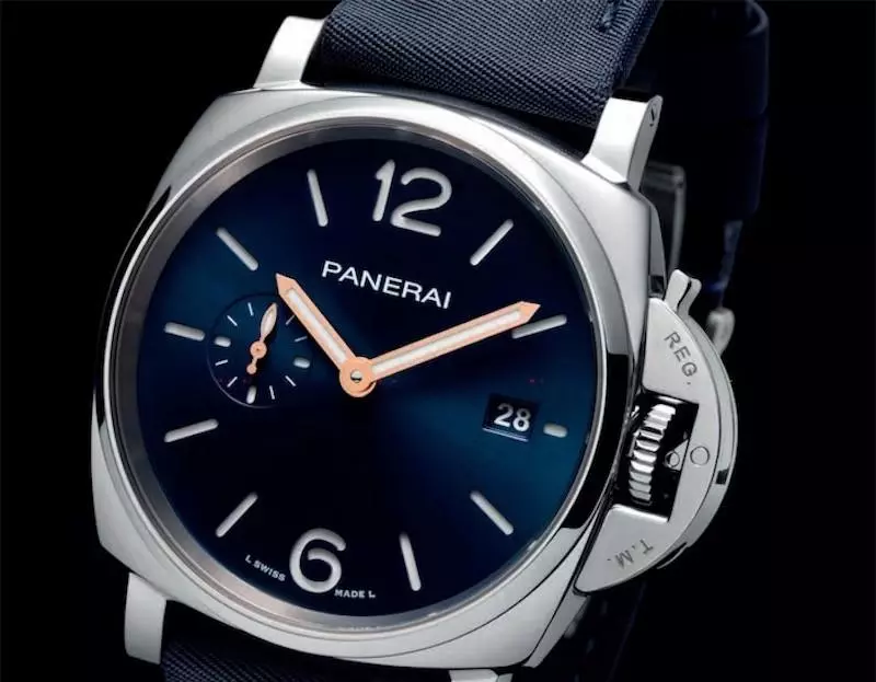 沛纳海Luminor Due庐米诺杜尔系列新作依然搭载P.900自动上链机械机芯,每小时振动28,800次,动力储存达3日,防水深度约50米。其精钢表壳搭配Prada Re-Nylon再生尼龙表带,提供用于42毫米腕表的铁灰色和海军蓝色款,以及适用于38毫米腕表的浅粉色和矢车菊蓝灰色款。